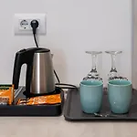 The rooms are equipped with a writing table, as well as sound-proof windows for guests' comfort. They offer an electric kettle, a refrigerator, and kitchenware. Bathrooms include a walk-in shower and a separate toilet, along with a hairdryer and bath sheets.